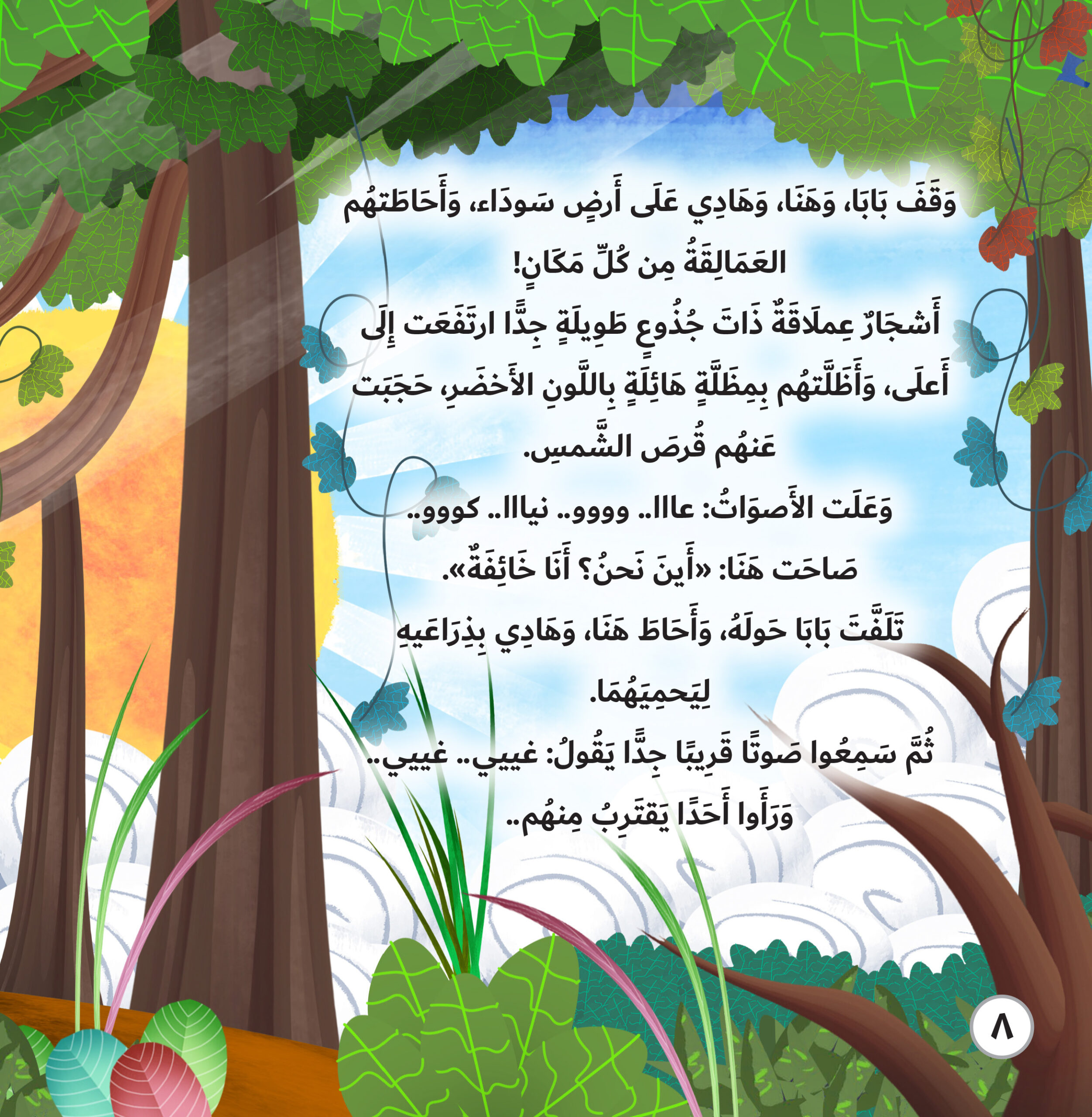 تدور القصة حول الطفلين “هنا” و”هنادي” ووالدهم حيث جلسوا يرسمون صورة للأشجار والطيور والحيوانات، ولكنهم يجدون أنفسهم فجأة بالغابات الاستوائية وقد أحاطت بهم الأشجار العالية والحيوانات، ثم يقابلون الطائر “توك توك” بمنقارة البرتقالي الطويل في رحلة استكشافية فوق الغابات الاستوائية التي تمثل 6 في المئة من مساحة اليابسة على الأرض وهي مصدر 40 في المئة من الأكسجين لذا يطلق عليها “رئة كوكب الأرض”، ولكن الإنسان يدمر هذه الرئة من خلال القطع الجائر لأشجارها واستغلال أخشابها، والبناء على أراضيها، مما يتسبب في اختلال التوازن البيئي على الكوكب.
